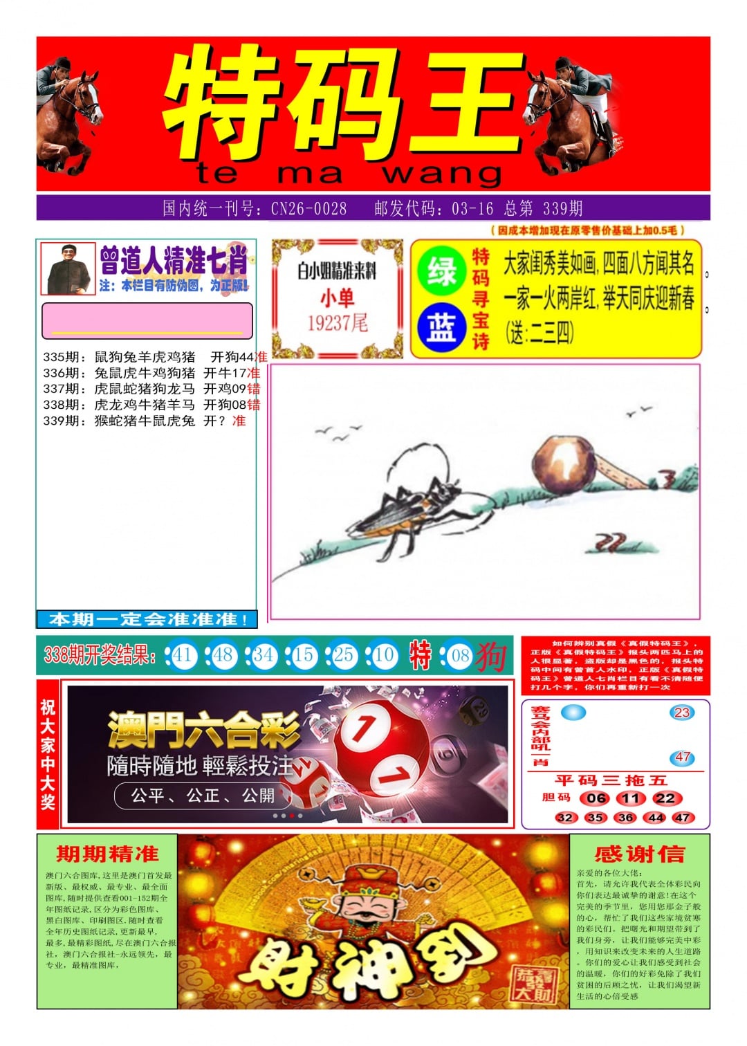 338期必中③肖【猪狗马】开 08 准